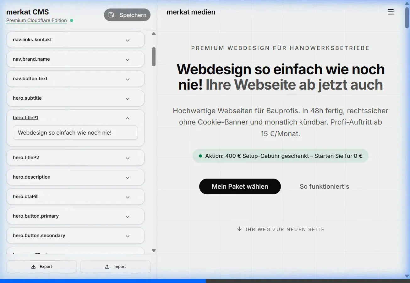 Professionelle Webseiten mit Next.js, speziell für Handwerksbetriebe. Kein Baukasten, kein WordPress, sondern echte Programmierung, die schnell lädt und gut aussieht.